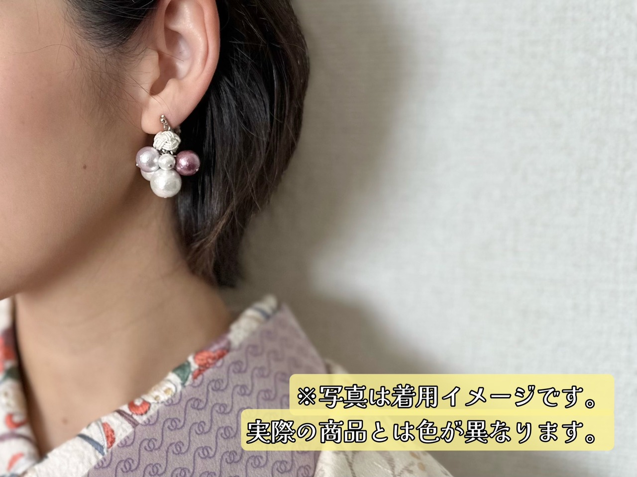 一点一点手作りで仕上げた水引とコットンパールを使用した、オリジナルアクセサリー「仄-Honoka-」。あなたのコーディネートにほのかな彩りを添えます。コットンパールの丸みと水引の流れるようなラインが、上品で優しい雰囲気を醸し出し、きものスタイルを一層引き立てます。